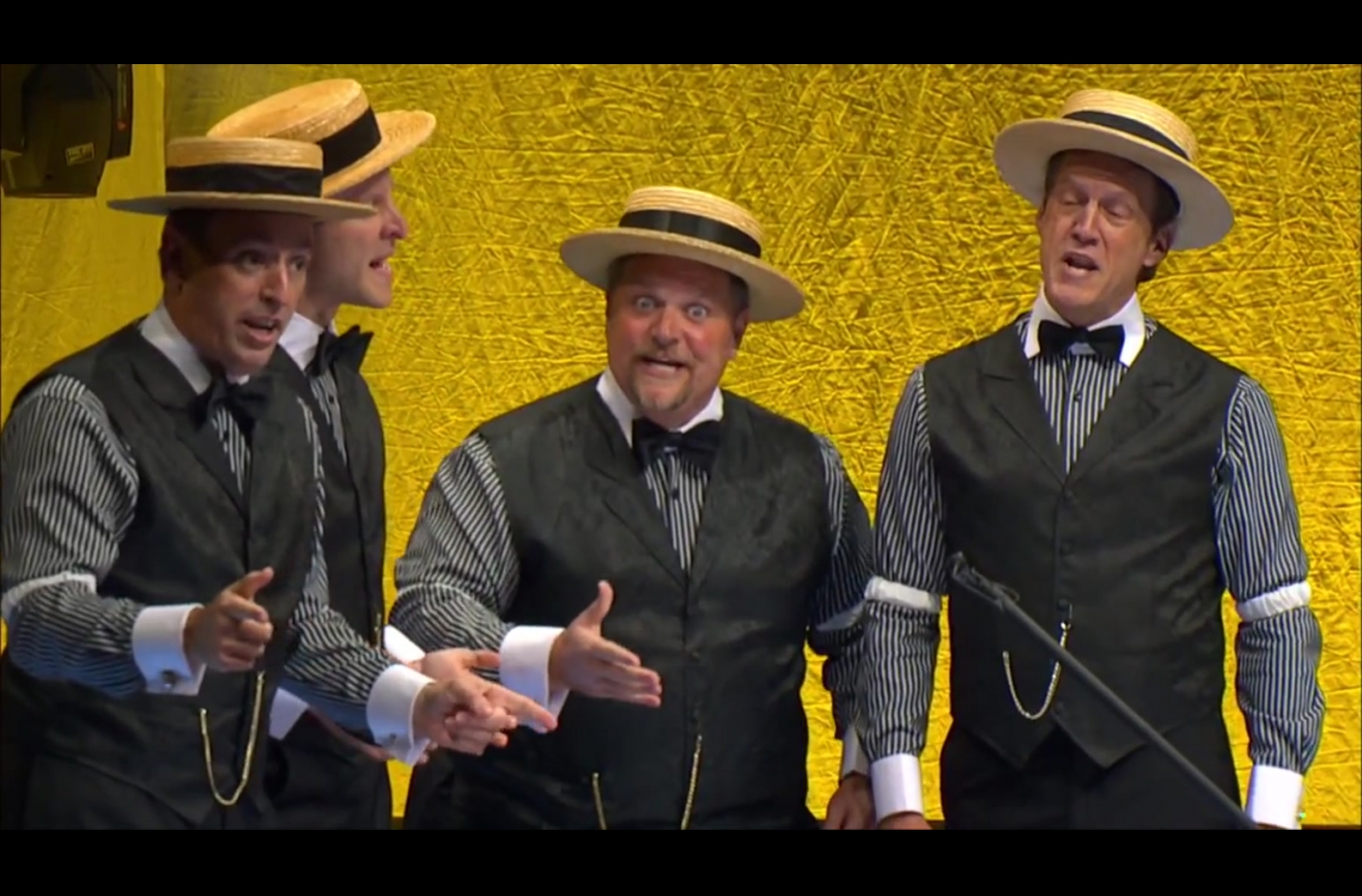 Barbershop quartets aren’t exactly known for their pop culture savvy. They tend to sing songs from what are known as “the good old days,” which usually just means old songs. One quartet, known as Main Street, is well aware of this problem, but they have a solution. What songs will we consider to be from “the good old days” in the future? The top 40 hits of the last few years of course. Sit back and enjoy this humorous reimagining of the barbershop quartet style that pays loving tribute to the genre while pushing it out of the old familiar songbooks of yore. How many hit songs can you recognize? Let us know in the comments below. Read more: http://www.wimp.com/barbershop-quartet-top-40-medley/