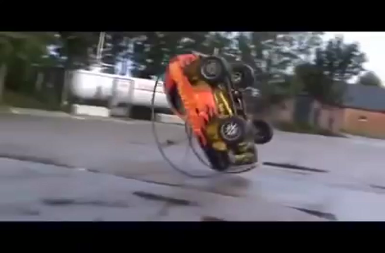 Human gymnastics takes years of practice, exercise, and training to master. Car gymnastics, on the other hand, are way easier. They just take a rollbar, front wheel brakes, and a little speed. See for yourself in this wonderful video of one industrious car owner’s somersault ready driving machine. We have to tell you not to try this at home, so you know it’s going to be fun. Read more: http://www.wimp.com/awesome-car-somersault/