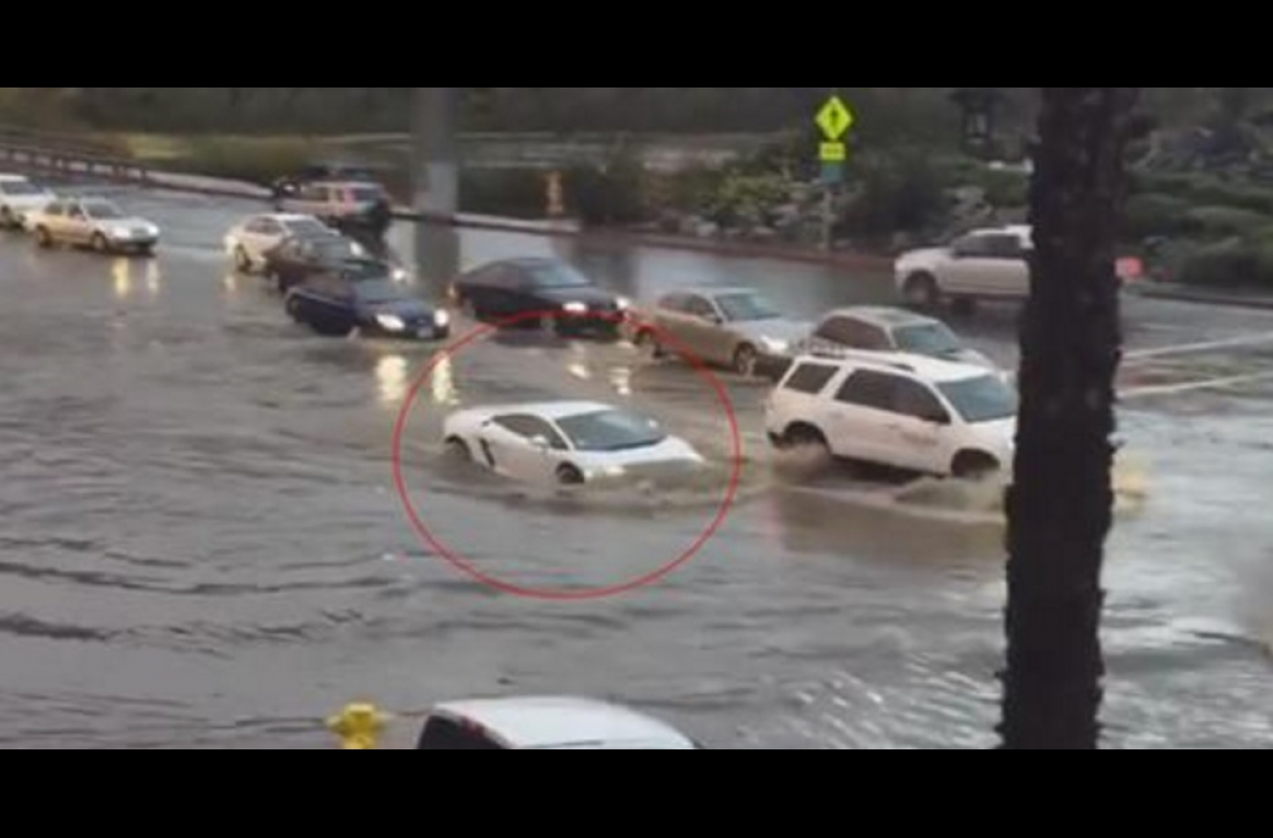 When rain pounded parts of California earlier this week, everyone was caught off guard. Extreme drought had become a fact of life for the state’s residents over the past few years, so worrying about excess precipitation was akin to a distant memory. However, thousands of people were left stranded and suffered property damage because of the inclement weather. The situation became especially dire for those who were out on the road when caught in the chaos of the storm. Even though the water was quickly rising, the driver of this Lamborghini Gallardo decided to take a chance in traversing the flooded streets of San Diego. Though the car made it through, it should be noted that driving through high water is incredibly risky. Because the engines of many sports cars are in the rear, the vehicles can be almost completely submerged without significant amounts of water entering the engines’ intake. However, this does not apply to the vast majority of vehicles out there. Also, when a large portion of any vehicle is submerged, it is at risk of being swept away by the water’s current. For smaller cars, all it takes is about 12 inches of rushing water. Read more: http://www.wimp.com/lamborghini-drives-through-flooded-water-street-san-diego-river/