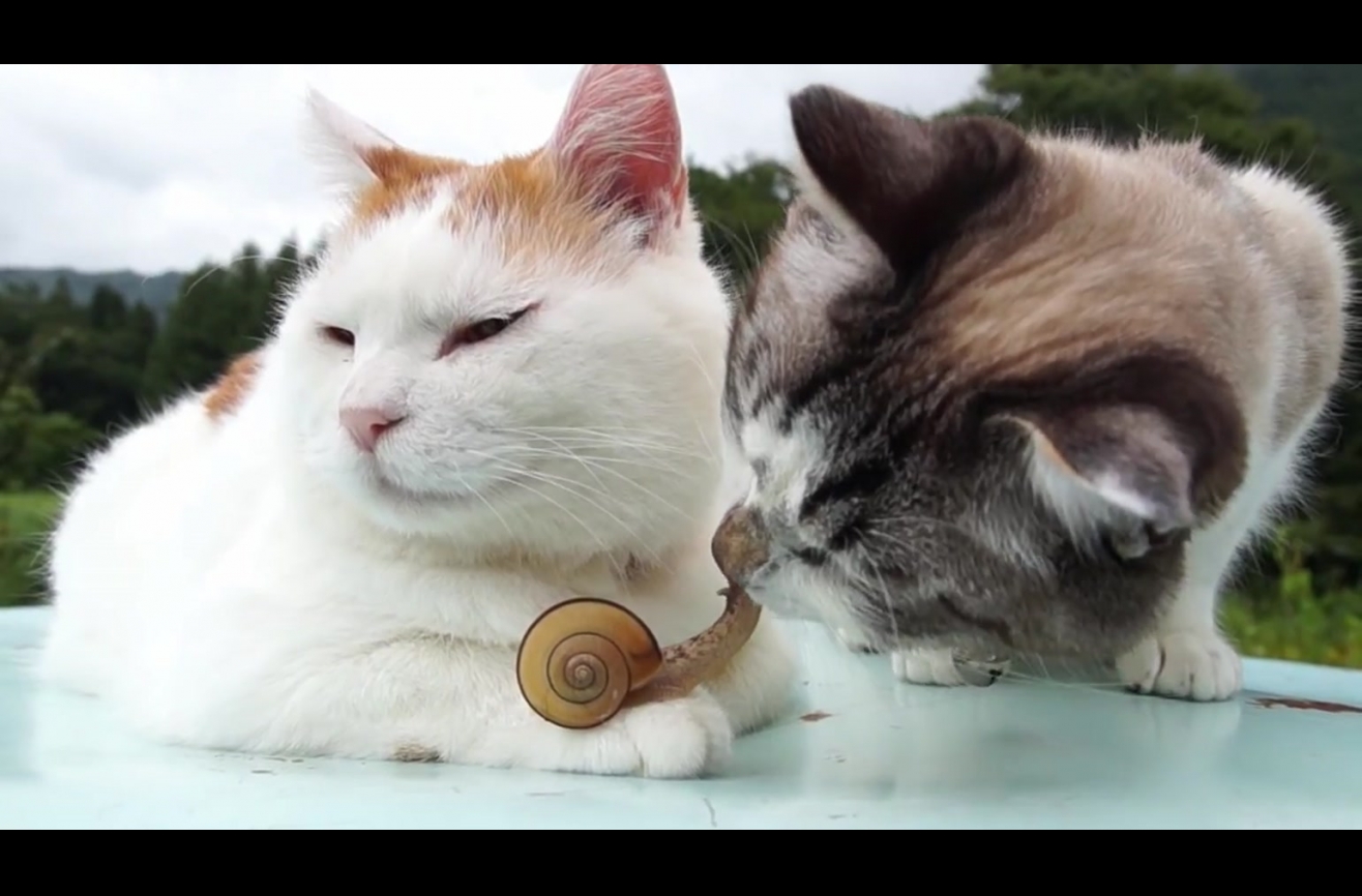 As a society, we sometimes focus too much on the chaos of the animal kingdom. Yes, there’s lots of animals hunting and eating other animals for food, but what about the gentler aspects of nature. What about friendship? Today we examine one such friendship, between an adorable snail and two peaceful cats. First, let’s address this chill snail. There it sits, just hanging out with these cats, looking at the world outside its shell and liking what it sees. This snail has the friendly disposition of a Disney character. Nothing phases it. Even a kiss from a cat. Then you have these two peace loving cats. One sits with the snail hanging out on its paw, giving gentle licks to its feline partner who seems slightly perplexed that the snail doesn’t want to sit on him. It’s cool; the other cat knows how to show his affection for the snail. Soft, little kisses. We don’t exactly understand how this friendship came to be, but we’re thrilled it exists. Read more: http://www.wimp.com/snail-cat-friendship/