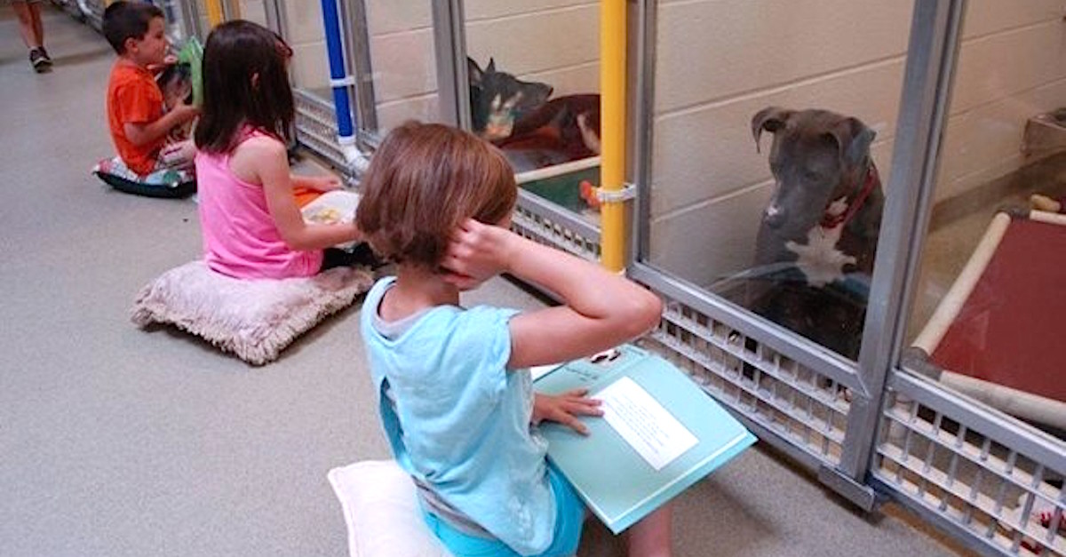 According to estimates by the American Society for Prevention of Cruelty to Animals (ASPCA), nearly 7.6 million pets and companion animals enter into animal shelters every year. Of those, 3.9 million are dogs and 3.4 million are cats. Thanks to overcrowding, lack of resources, and poor legislature, nearly 2.7 million animals in the shelter systems end up being euthanized. A lot of these euthanized animals are ones that never got adopted due to behavioral issues. Imagine if you were sent to a shelter after living with a loving family for many years, or worse still, after having been abused and neglected. It’s heartbreaking, and it’s no wonder that so many shelter dogs are timid or frightened. Sadly, these shy puppies aren’t popular for adoption since families prefer puppies who are calm and playful right off the bat. While any dog getting rescued from a shelter is a good thing, it is pretty sad that these scared puppies don’t get the shot they deserve. That’s where the Humane Society of Missouri’s Shelter Buddies Reading Program comes in. This brilliant initiative trains kids aged 6-15 to pick up on a dog’s body language. If the dog appears stressed or anxious, the kids sit down with them and read to them aloud. If the dog responds positively by showing interest and calming down, they are rewarded with a treat. This helps condition them towards more desirable behavior, which leads to a greater chance of being adopted. The program also has the added benefit of letting kids practice their reading skills with a non-judgmental audience, so it’s a win-win all around. The video below shows the Shelter Buddies’ first annual “Deck the Howls” holiday event in December of 2015. H/T: Humane Society of Missouri Read more: http://www.wimp.com/kids-read-to-shelter-dogs-to-prepare-them-for-life-after-adoption/