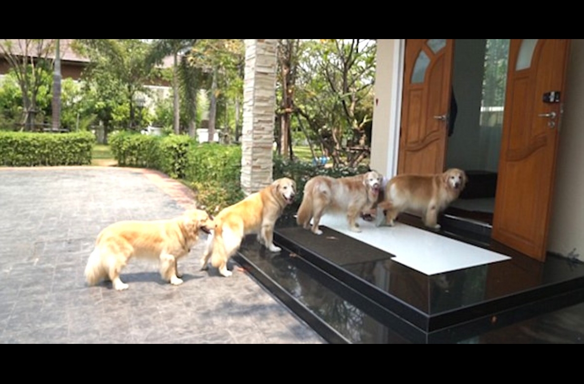 Golden Retrievers are one of the most popular pet options for dog owners, especially in America. Originally bred as hunting dogs, meant to retrieve shot ducks and other animals for the hunters without damaging the prize (hence the name), they are known for their intelligence, playfulness and confidence. They are especially good with children due to their patient nature, and respond very well to training. Golden Retrievers are very outdoorsy dogs due to their breeding, and they require a lot of exercise (around two hours or more daily) in order to keep them healthy and happy. They have a natural love of water as well, which can often bring back a lot of mud into your home when they come back in. Many a dog owner can attest to the mess their retrievers track in after a day outside. Thankfully, as mentioned earlier, retrievers are incredibly smart dogs and are fairly easy to train. This clever mom’s somehow taught them all to wait at the door when they’re coming back in so that she can clean their paws off one by one. They raise their paws up and wait patiently as she gets them clean and ready for dinner. Read more: http://www.wimp.com/trained-retrievers-line-up-for-paw-cleaning/