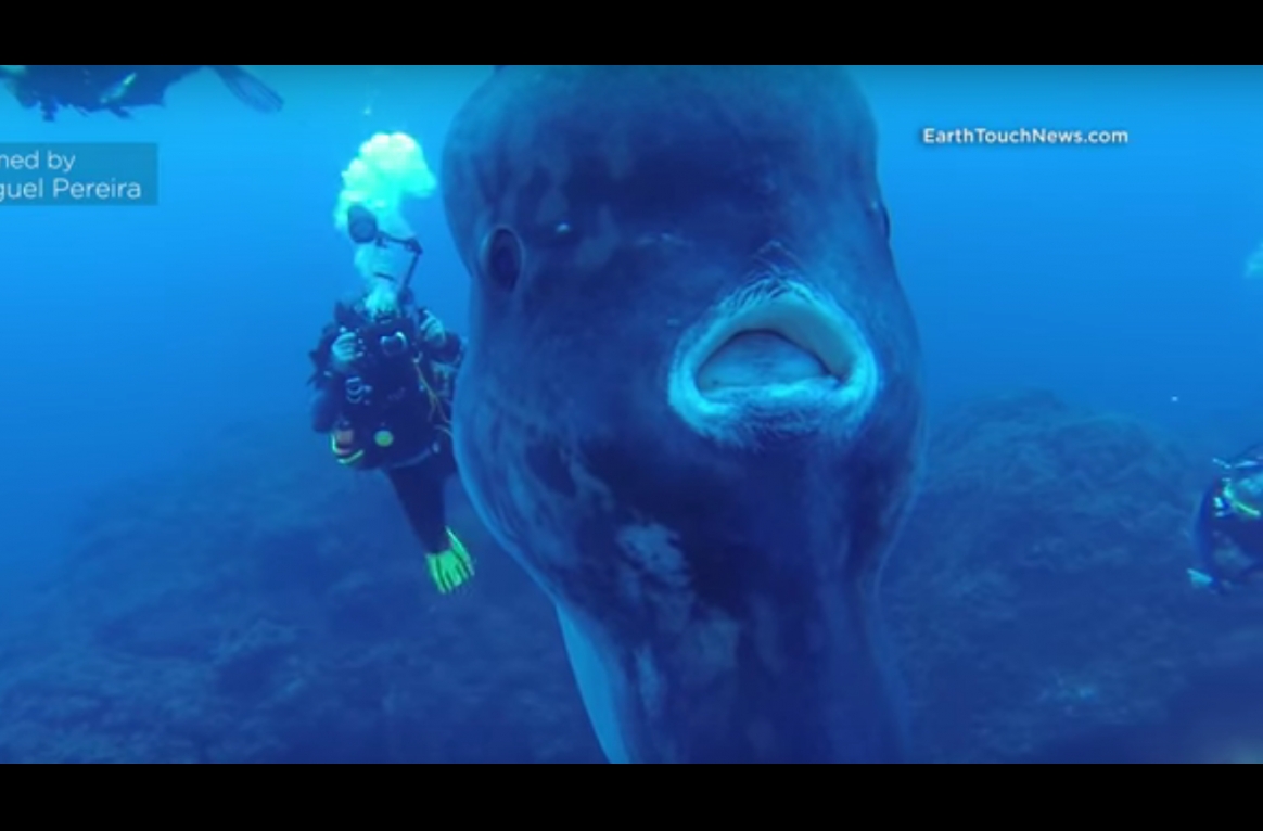 A small group of scuba divers off the coast of Portugal got a big surprise recently when they got a rare, up-close glimpse of a gigantic sunfish. Luckily, photographer Miguel Periera was there to capture the encounter and document just how big these fish can get. This particular sunfish was reported to weigh close to 3,000 lbs. Sunfish hang out in tropical and temperate waters and can be found all around the globe. Interactions with humans are pretty rare, though. Little is known about the biology of these fish as researchers have had limited opportunities to study them. Read more: http://www.wimp.com/huge-sunfish-swims-past-divers/