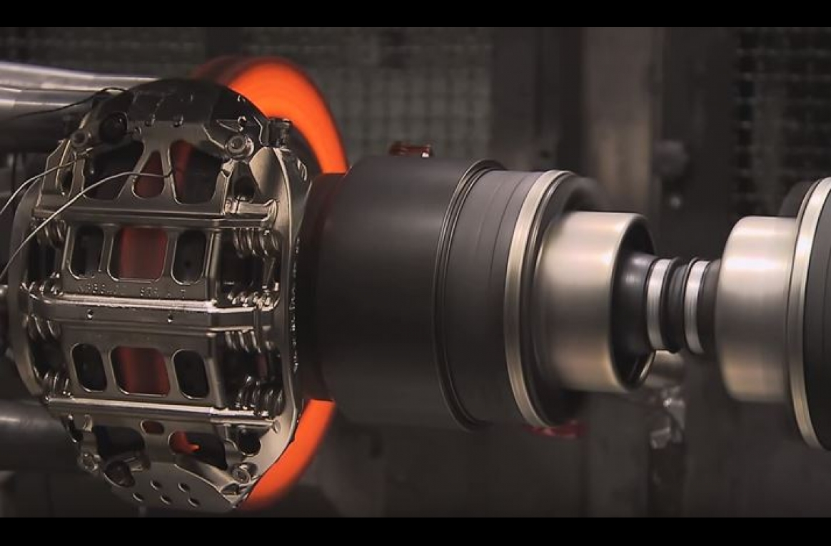 Ever since its inaugural season in 1950, Formula One has been the highest single seat racing class in the Fédération Internationale de l’Automobile. Reaching speeds as high as 220 mph, they are the fastest race cars in the world competing on road courses. Every part of the car, from the fuel to the brakes, must conform to a strict “formula,” hence the name. Here, a Formula One car’s brakes are tested to make sure they function properly. The orange glow that you see when the brakes are employed is the process of kinetic energy being converted to thermal energy. This is the law of conservation of energy in action, which states that energy is neither created nor destroyed. Instead, it simply changes forms. So, whether you’re applying the brakes on your sedan, or braking your Formula One car through a turn, the same process of converting energy will always occur. Read more: http://www.wimp.com/testing-out-f1-brakes/
