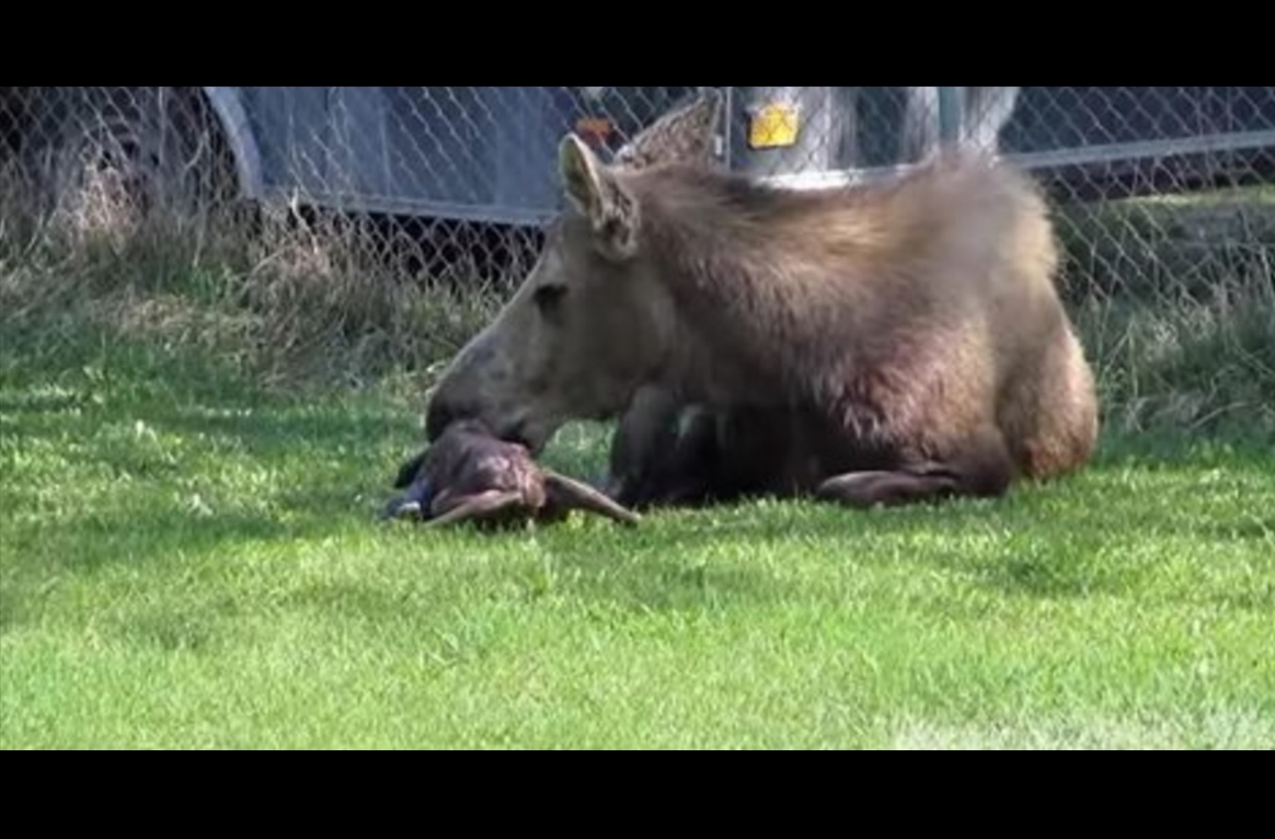 I’ve lived in big cities for a long time and I loved them, but now that I live in the countryside, I have to say it’s amazing to be able to see as much wildlife as I get to see. Comedian Louis C.K. joked that when he lived in New York City, seeing a deer on the occasional trip upstate was a huge deal that they’d stop the car for. Now that he lives upstate, deer are a common sight and he’s realized they aren’t magical creatures – in fact, he can’t stand them! While the interaction between animals and humans in suburban areas can sometimes be a bit strained, there are still plenty of amazing moments to be had. In Anchorage, Alaska, Victoria Hickey and Sarah Lochner took this video of a mama moose giving birth in someone’s backyard! As if witnessing the miracle of life and the tenderness of the mother grooming her newborn as it takes its first few wobbly steps in this world wasn’t already breathtaking enough, there’s more to come. At the 3:50 mark, you can see a head pop out from behind the mother. Could it be? Yep, this mother is having twins! Congratulations to her, and kudos to the people who made sure their yard is a safe and peaceful enough location for the mother to consider using it for this special occasion! Read more: http://www.wimp.com/mama-moose-gives-birth-to-twins-newborn/