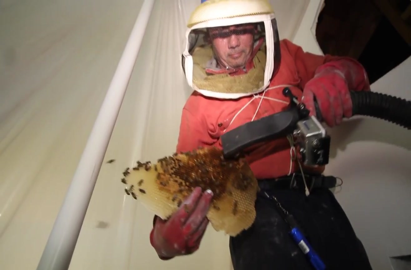 Bees provide an important foundation for our ecosystem, but that doesn’t mean you’d want to have one as a roommate. Or 50,000 of them. Larry Chen faced just that problem when he discovered a massive hive hiding behind the walls of his house. Rather than calling an exterminator and killing the little guys, he took 5 hours to manually remove the giant hive behind his walls. Utilizing vacuum cleaners and lots of plastic sheeting, these bee saviors managed to save 95% of the 50,000 living within their walls. The bees were transported to a farm, along with their honey combs. Larry now lives in a bee free home. Read more: http://www.wimp.com/man-rescues-fifty-thousand-bees-from-his-house/