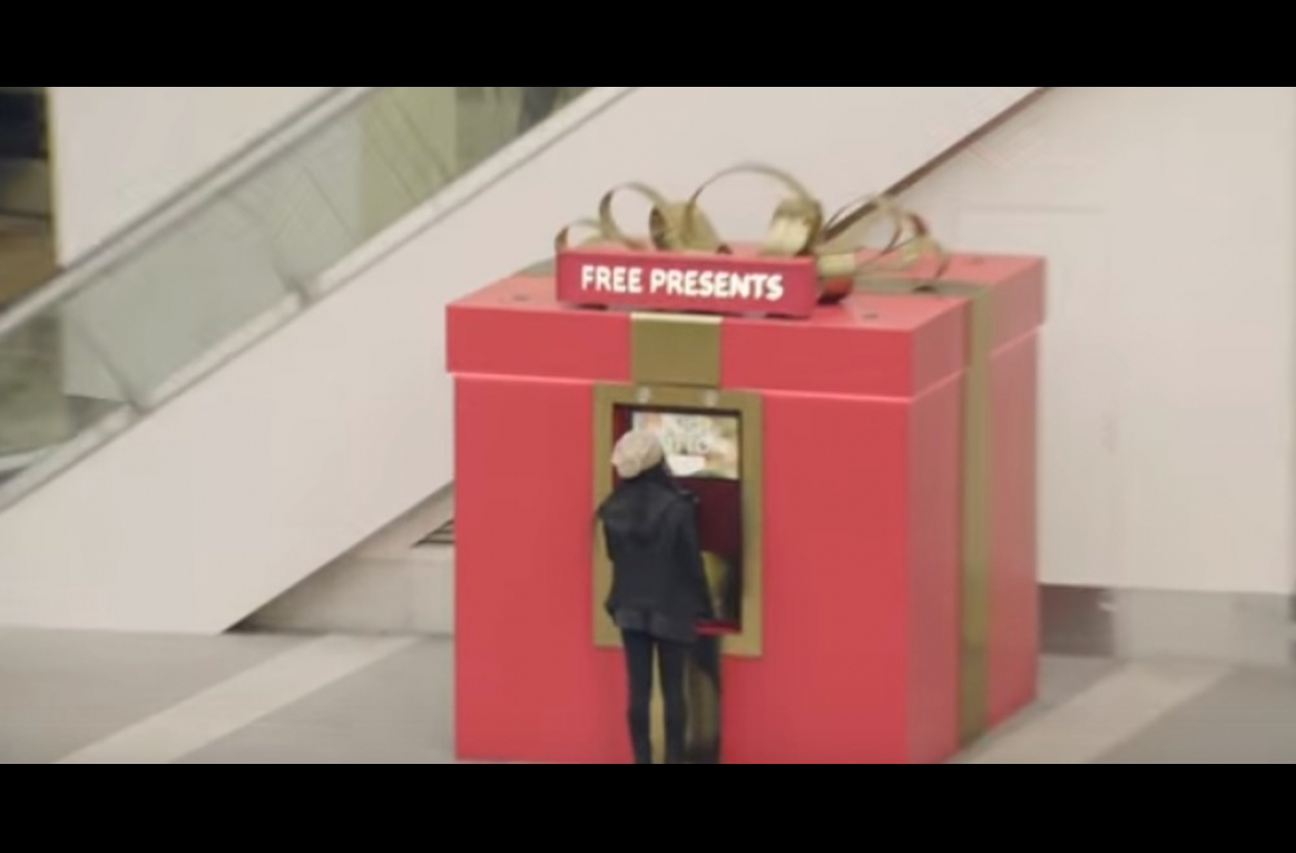 Christmas is probably my favorite time of year, but these days it can be easy to get a bit lost in it all. Between thinking of all the yummy holiday treats and trying to get your wish list just right, you may lose sight of the fact that the real point of the season is not about what you can enjoy for yourself, but rather how you can give and spread kindness to others. In this video, a machine marked “Free Presents” is set up in a crowded area. A ringing phone attracts the attention of people walking by, who are given a free present when they answer the phone. There is one important catch, however – the people answering the phone have to give the free gift to a random stranger. All of this helps drive home the point that this season is about giving and doing something nice for someone other than yourself. Going by the reactions of the people in the video, I think it’s safe to say that even though they gave up their free presents, the feeling of warmth and generosity they received more than made up for it. Read more: http://www.wimp.com/machine-gives-free-presents-that-must-be-given-away-holiday-spirit/