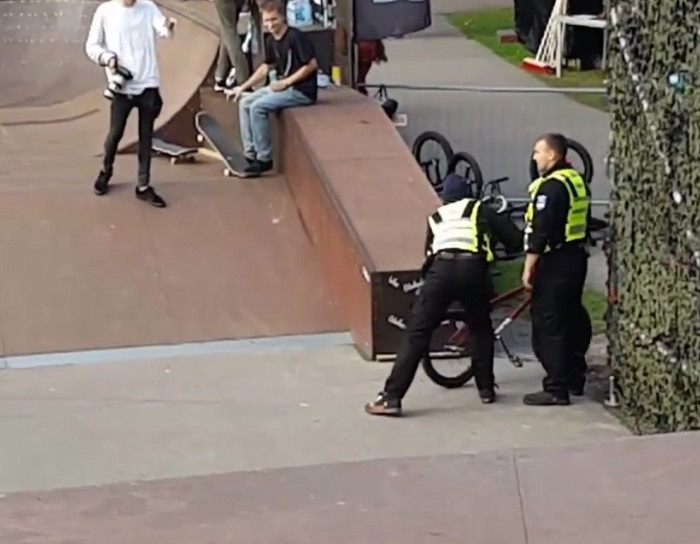 When this BMX rider was hogging the ramps during a skateboard showcase, the security guard decided to confiscate his bike. But, before placing it with the rest of the bikes, this security guard decided to have a little fun… Read more: http://www.wimp.com/the-last-thing-youd-expect-from-a-security-guard/