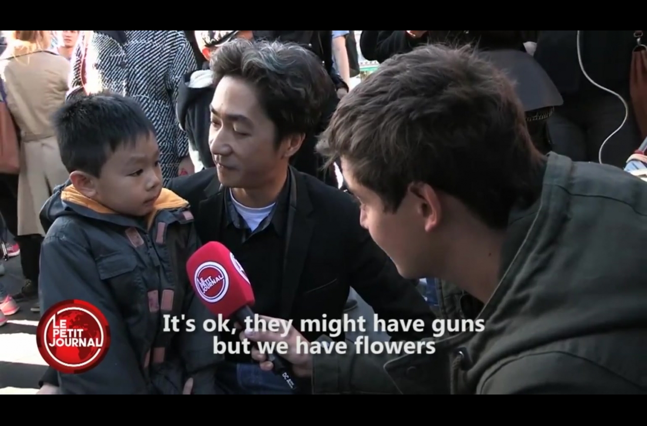 After the attacks in Paris on November 13 and the senseless violence that takes place daily all over the world, many were left wondering how such things can happen and why so much evil exists in the world. Among those asking these questions was a young boy in Paris who visited the memorial site with his father. The boy was understandably scared and shaken by the attacks, but his father explained the event through a powerful metaphor. “They have guns but we have flowers,” the father says. While flowers don’t literally fight evil, the love and compassion those flowers represent show the most powerful weapon humans have. As the great Mr. Rogers once said, “Whenever there is a tragedy, always look to the helpers. There will always be helpers.” The young child learned a lesson that will stay with him forever, the human spirit is always stronger than evil. Read more: http://www.wimp.com/father-and-son-paris-attacks/