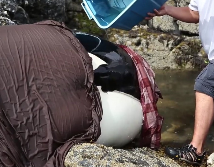 After a female orca found herself trapped on rocks when the tide went out, these researchers worked for eight hours straight to keep her alive. Read more: http://www.wimp.com/researchers-rescue-killer-whale-stranded-on-rocks/