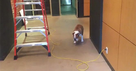 The smartest people in the world are all problem solvers. They have a tremendous ability to examine an issue from all angles and figure out what the best way to handle it is. These problem solvers also have a tendency to think completely outside the box and come up with a solution that no one else has ever thought of – like Steve Jobs when he created the iPhone and Taco Bell when they created the Quesalupa. Well, you can count Bentley the bulldog among these titans of innovation. Bentley is an English bulldog living in Vancouver, Canada who became Internet famous recently for a genius bit of quick thinking. While walking through his house, Bentley found himself face-to-face with one of his worst fears – a yellow cord. Bentley knew he didn’t want to step on it, but he also wasn’t about to let it keep him from crossing the hallway. That’s when Bentley’s mind was put to the test, and he more than impressed everyone who was watching. The English bulldog calmly turned around and put his back to the cord. Then, one step at a time, he walked backwards over the cord so he didn’t have to face it. It may seem weird, but for Bentley it was a perfect solution. Once he stepped past the cord, Bentley turned back around and continued his journey out the door. From the look on his face, you can tell this was one happy pup. Please enjoy and SHARE this video with your friends on Facebook! H/T: Mister Bentley The Dog Read more: http://www.wimp.com/this-bulldog-was-scared-to-cross-over-this-cable/
