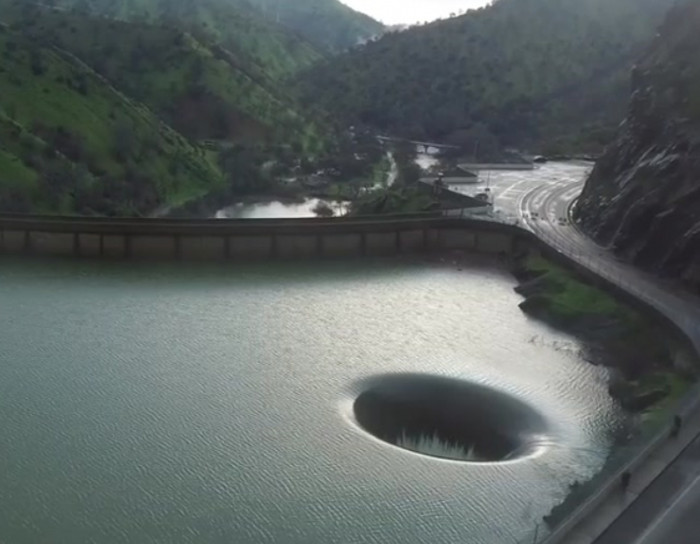 This spillway at Lake Berryessa in California hadn’t been drained in 10 years. Lucky for us, YouTuber “Evan K” was on site to capture this satisfying spectacle with his drone. Read more: http://www.wimp.com/draining-a-spillway-is-incredibly-satisfying/