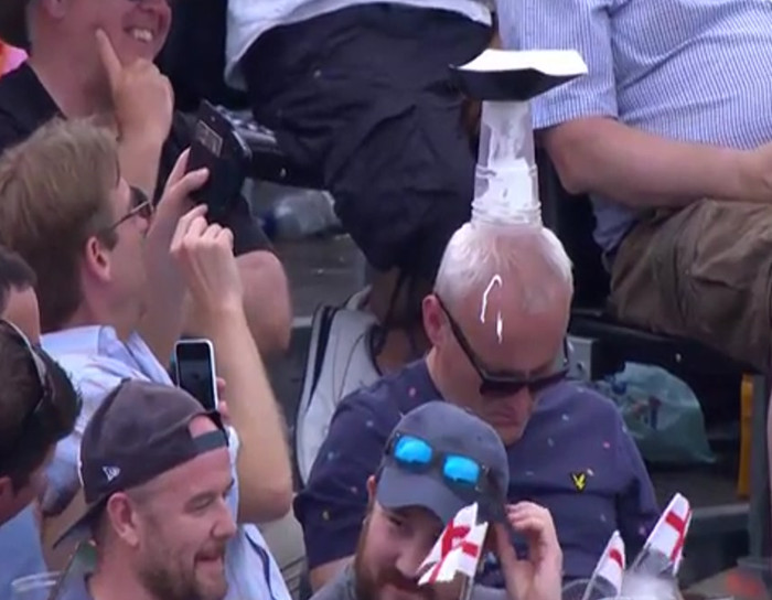 Cricket might seem like an antiquated version of baseball to some Americans, but rest assured there are plenty of countries in the world that are absolutely “batty” about the sport (see what I did there?). Unfortunately, it looks like this man’s enthusiasm for the sport was trumped by his need to take a nap, and it doesn’t take other fans long to have some fun at his expense. You snooze, you lose buddy. Read more: http://www.wimp.com/why-you-should-never-sleep-at-a-cricket-match/