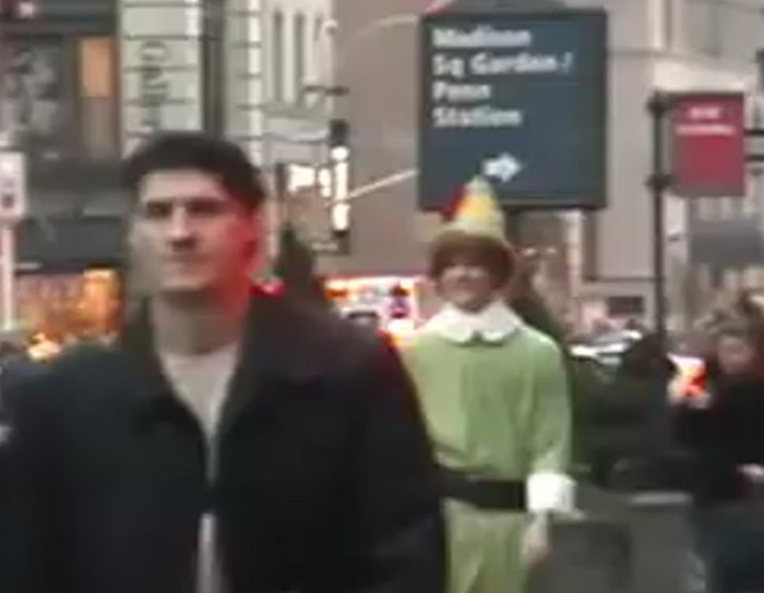 When you’re 6’9″ and own a “Buddy the Elf” costume, this is the only acceptable way to travel around New York City. Read more: http://www.wimp.com/guy-explores-nyc-dressed-as-buddy-the-elf/