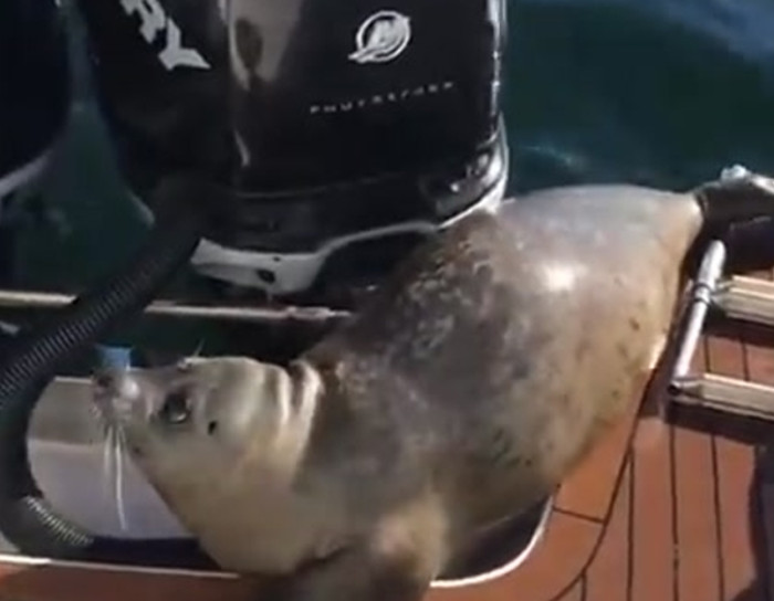 While out whale watching off the coast of Vancouver Island, this family got quite the scare when a seal jumped onto the back of their boat. Apparently, they let it stay there for 30-45 minutes while the orcas who were chasing it lost interest and swam away. Read more: http://www.wimp.com/seal-jumps-on-boat-to-escape-orcas/