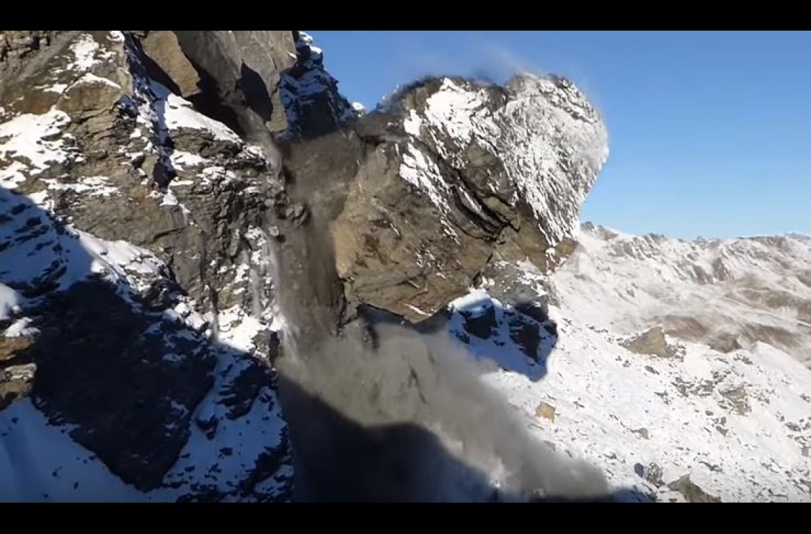 Rockfall is a fascinating natural event that, for obvious reasons, you’d never want to observe too closely. Luckily, a geologist studying Mel de la Niva, a 9,049-foot-tall Swiss mountain, observed intense activity in the area and prepared to record what might happen. Don’t worry, the entire village beneath the mountain was evacuated in anticipation of this massive rockfall. There are a variety of factors that trigger rockfall. Water surrounding the rock could freeze and then thaw, forcing the rock apart. Alternatively, when the wind blows on trees, their roots can shift and break rocks apart. It’s incredible how such seemingly minor factors like tree roots and thawed ice can lead to 2,000 cubic meters of rock tumbling down a mountain. Read more: http://www.wimp.com/mountain-side-rock-slide/