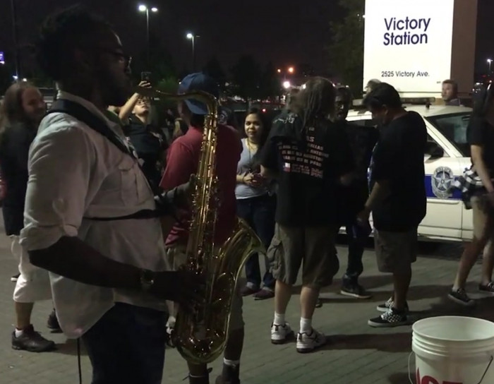 Why pay for concert tickets when the real show is happening on the sidewalk for free? Read more: http://www.wimp.com/saxophone-player-melts-faces-after-iron-maiden-concert/