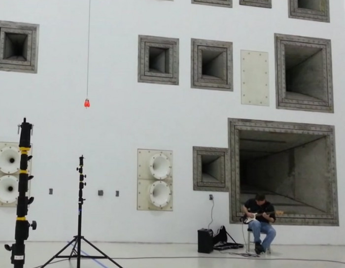 NASA uses their reverberant acoustic test facility to simulate the incredibly loud noises one can expect to hear during a launch. Guitarist Rich Evans, however, thought he’d use it for something a little different. Read more: http://www.wimp.com/playing-guitar-in-a-nasa-space-chamber/