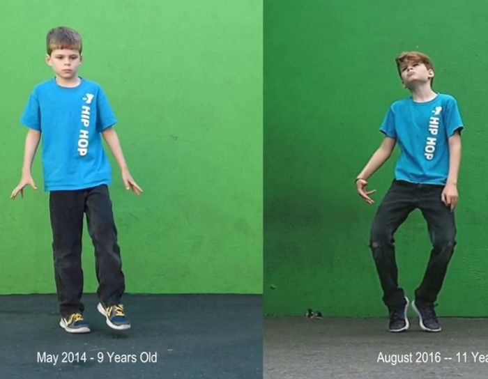 It’s amazing what two years (700 hours) of practice can do. Read more: http://www.wimp.com/kid-shows-amazing-2-year-dance-progress/