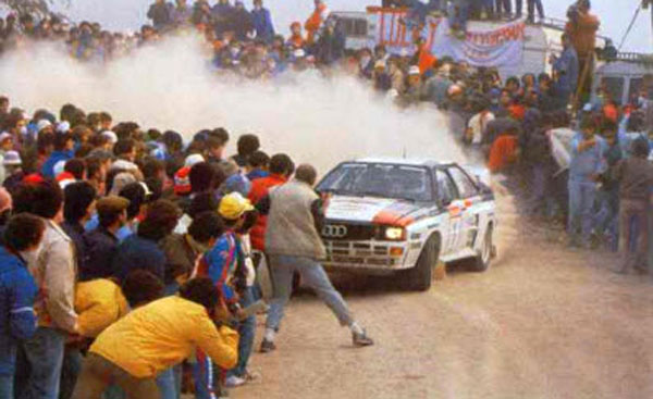 This onboard footage from a rally race in the mid-80s shows spectators standing incredibly close to the road, only just leaping out of the way as driver Walter Röhrl comes screaming past at scary speeds in his Audi Sport Quattro S1. In the 1980s de-regulation in some European countries opened the way for these crazy ‘Group B’ races, with some of the most exciting cars ever to hit the motorsport scene. Eventually the Group B races were banned because of both driver and spectator deaths. Nothing like it has ever happened since. Source: basZero RACING Share this pants-soiling video with your friends below. Read more: http://viralnova.com/rally-footage/