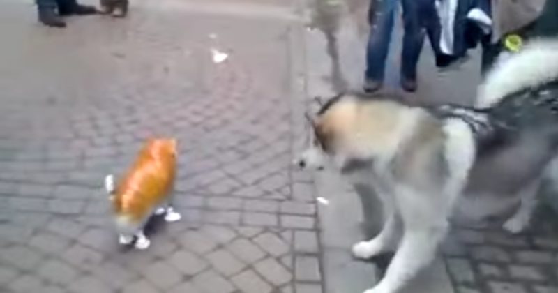 I imagine dogs feel the same way about balloons as people do about clowns… Some love them…others are 100 percent terrified of ’em. I mean there’s this guy who loves popping water balloons. And this guy who wants to wipe the smile right off that balloon’s face. When this big husky came across a cat balloon that traipsed around on the ground, at first, he was ready to get into a knock-down, drag-out brawl. YouTube / wavrec As time passed, though, it seems he just wanted to be friends… YouTube / wavrec But when he got no love in return, he became skeptical — and a little frustrated. YouTube / wavrec Watch the whole hilarious exchange here. Read more: http://www.viralnova.com/dog-balloon/