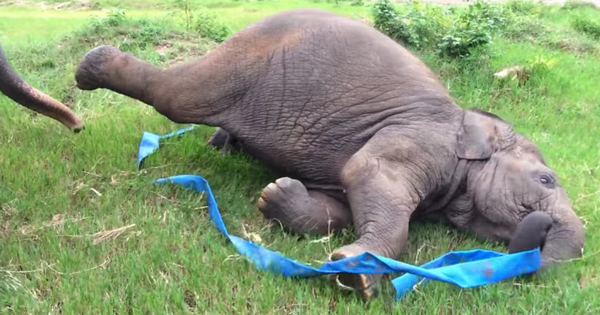 Rescued Baby Elephant Plays With A Ribbon At A Park. My Heart Just Melted.