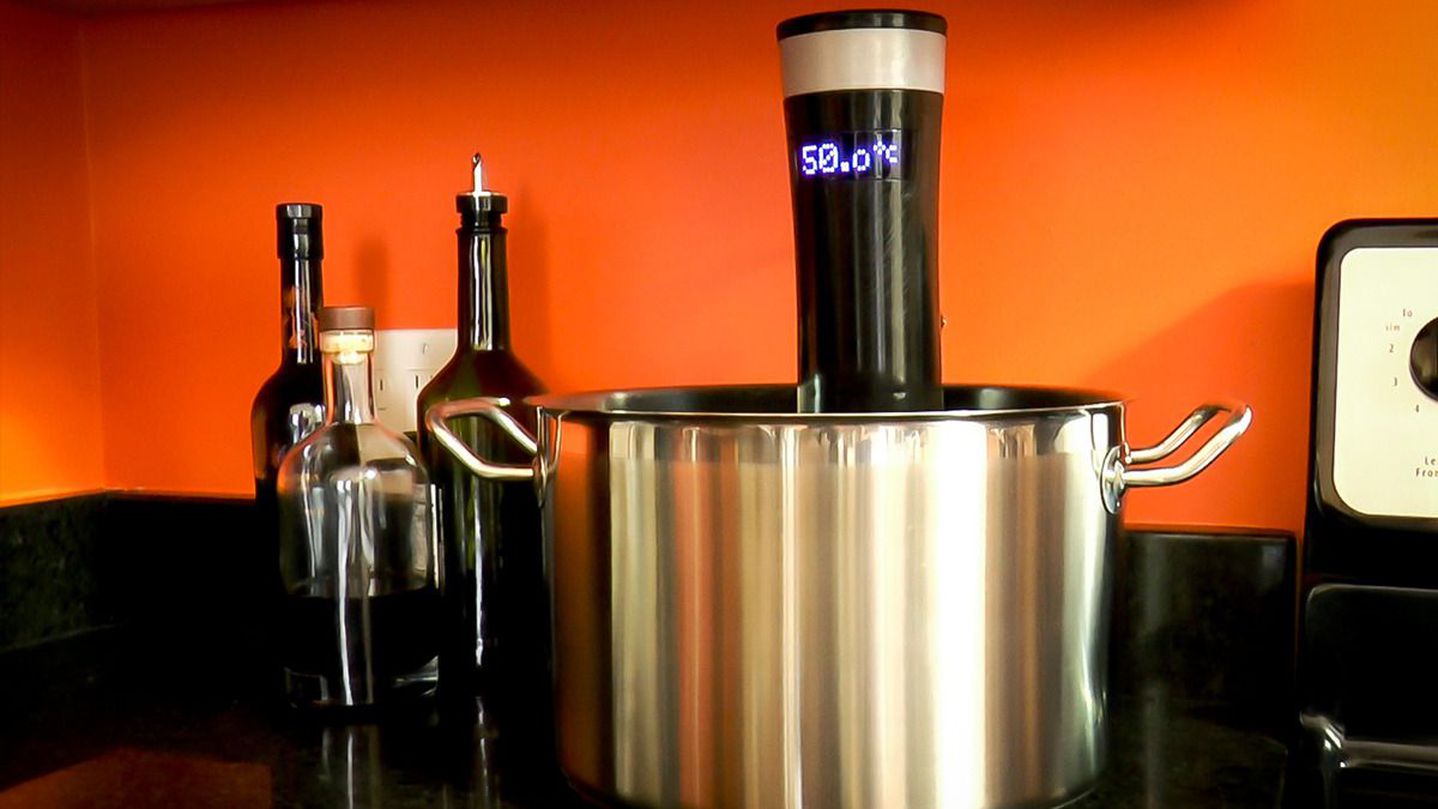 A self-professed food geek has developed a sleek kitchen gadget that makes high-end sous vide cooking accessible in your own home. Sous vide is a cooking technique where food is kept in a water bath that is held at a consistent, low temperature. As explained in the video below, the sous vide method can’t overcook food in the water, allowing consistent results each time you make something. It is partially similar to cooking with a crock pot, in that you can plan a meal ahead and leave food cooking for hours at a time. Seattle-based Scott Heimendinger and Lukas Svec created the Sansaire immersion circulator, which heats and holds water at a very precise temperature, circulating the water to even out hot and cold spots. The consistent results give you evenly-cooked food, as show in the image below (sous vide on left, versus traditionally-cooked on right). Sous vide is a technique we’ve seen in restaurants, but Heimendinger told Mashable it makes sense in the home environment “because it removes you from the role of human thermostat.” In an oven, the temperature is higher so you can overcook food. With sous vide, the water bath is set at or slightly above the intended temperature you want the food to reach. Heimendinger said he cooks a medium-rare steak via sous vide at about 52 degrees Celsius. Afterwards, he uses a blow torch to quickly sear the steak. Heimendinger, also founder of the blog SeattleFoodGeek.com, said he first discovered this technique when he went out to dinner and had a side salad with a sous-vide-cooked egg on top. “The texture was so incredible,” he told Mashable. “It was so perfectly cooked. The yolk: it was thick but still runny, and the white was like pudding … There was something totally special and different about it, and I had to know how it came to be so.” Along with cofounder Svec, Heimendinger wants to take their Sansaire gadget into full-scale production by raising funds on Kickstater. Their project hit its $100,000 goal in about 13 hours, when it first launched in early August. With 13 days still left to go in the Kickstarter campaign, backers had already pledged more than $516,000, as of Friday afternoon. The Sansaire costs $199, much lower than the pro $1,200 circulators Heimendinger says he traditionally saw on the market. This summer, competitor Nomiku also raised more than a half-million dollars on Kickstarter for its immersion circulator. The Nomiku device currently costs $359. A Food Geek Heimendinger (pictured above, left) said he has always had some interest in food, noting that both his parents were good cooks and used to have a lot of dinner parties. “When I got to college, I got more interested in cooking on my own, mostly because the food on campus was pretty terrible,” he said. Heimendinger studied information systems at Carnegie Mellon University and has worked for IBM and Microsoft. He’s now involved with Modernist Cuisine, a Seattle-area research lab that merges the art […]