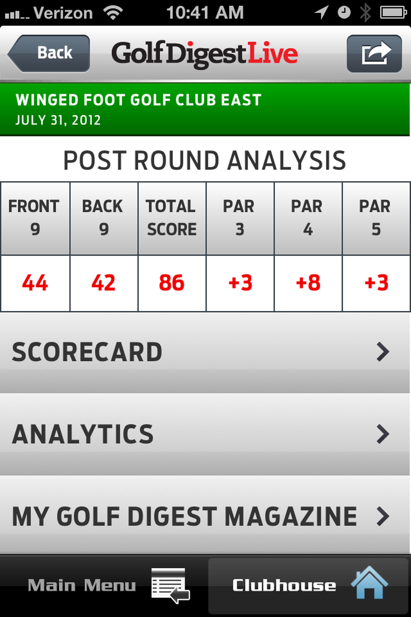 Imagine, for a moment, that you are Golf Digest magazine. You have been publishing golfing instruction month after month for 62 years. Some of that advice has, of course, been regurgitated now and again, while a wealth of original instruction has been divided among individual issues moldering in the basements of some long-running subscribers, likely never to be rediscovered. How, with the many new opportunities that digital technology now affords, do you repurpose that great archive to make it more useful and accessible for your readers? One smart solution is to combine the technology that powers the most popular mobile app for golf, Golf Logix, with your own content. Golf Digest Live, which is available through the GolfLogix app, helps users navigate courses, and tracks and analyzes their game performance — think of it as Nike+ for golf. The app then serves up a personalized magazine made up of tips and video drills from Golf Digest designed to address weaknesses players exhibited during their last game. That advice, which can be read on your tablet or computer as well as your smartphone, comes directly from the many acclaimed instructors and players Golf Digest has worked with over the years. The idea, as Lou Riccio, a statistics professor at Columbia University, says in the video above, is to “produce a magazine not on a monthly basis for the masses, but for you specifically after every round.” Beyond personalized, post-game instruction, the app also serves up some welcome content in-game. Some, like the audio library of golf jokes, is pure fun. But there’s also warm-up drills, tips and videos players can pull up to help address an issue they’re having mid-game, like how to hit from an uphill or downhill lie. Access to Golf Digest Live costs $19.99 per year with a free, 30-day trial. It’s available for more than 60 smartphone models, including iPhone 3G and up, as well as many Android and BlackBerry devices. With newsstand sales suffering from heavy declines, coupled with the growing popularity of content discovery and aggregation apps like Twitter, Flipboard and Instapaper, it may be time for magazine publishers to rethink the way they’re bundling content. This is a start. Golf Digest Live The main menu. Analyze your latest round, and access warm-ups, drills and video lessons designed to guide you through range practice. Access quick video tutorials during practice. The app also offers up content designed to be consumed mid-course. Some of it, like jokes and inspiration, is meant to be fun; other parts are more useful. The app also offers up content designed to be consumed mid-course. Having a panic moment? The app displays advice designed to refocus your game. The app uses GPS to help players navigate courses. Access your stats after every round. An example of post-round advice. An example of post-round advice. Read more: http://mashable.com/2012/08/16/golf-digest-live-app/