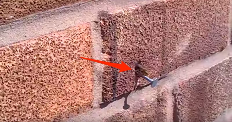 When you think of animals with immense strength, honey bees probably don’t come to mind. While walking by a brick wall one day, this man turned and saw a bee investigating a nail. Wondering why on Earth a honey bee, a creature that’s been around for centuries, would be so interested in a piece of hardware, he turned on his camera and started filming. Perhaps one of its 170 odor receptors caught wind of the ultimate prize, or maybe its 200 wing beats per second tuckered it out and it needed a snooze. In any case, this little bug decided to show off its strength in a pretty baffling way. Someone should probably run and tell Dwayne Johnson that this little bee definitely smells what The Rock is cooking. Read more: http://www.viralnova.com/bionic-bee/