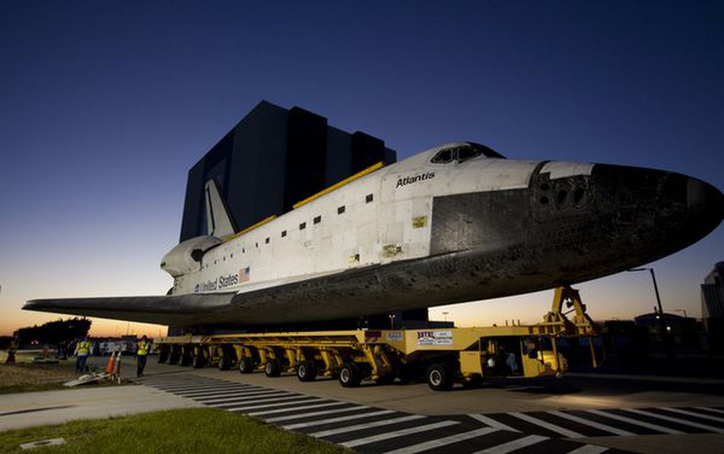 Space Shuttle Atlantis to New Home Ready to Roll Photo Credit: NASA Space Shuttle Atlantis Starts Its Early-Morning Trek Photo Credit: NASA Atlantis Rolls to Final Home Photo Credit: NASA Watching the Space Shuttle Go By Space shuttle workers at NASA’s Kennedy Space Center in Florida, watch as the space shuttle Atlantis is transported on a 10-mile journey to the Kennedy Visitor Complex Photo Credit: NASA Ariel View of Space Shuttle Atlantis Rolls to Its New Home Photo Credit: NASA Saying Goodbye Space shuttle team members carry a “We Made History Atlantis” banner as the spacecraft moves out of the Vehicle Assembly Building at NASA’s Kennedy Space Center in Florida for its 10-mile trip to the Kennedy Visitor Complex where it will be put on public display. Photo Credit: NASA Atlantis Rolls to Final Home: Underside View Photo Credit: NASA Space Shuttle Atlantis’s New Home Ariel view of the Kennedy Space Center visitor complexPhoto Credit: NASA A Long Journey Photo Credit: NASA Read more: http://mashable.com/2012/11/02/shuttle-atlantis-new-home/