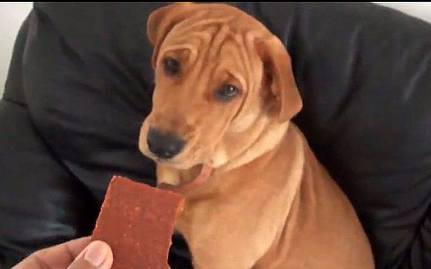 Dogs usually love beef jerky, but this is not beef jerky. When presented with low-fat lamb jerky, this five-month-old Labrador Retriever not only expresses his displeasure, but we’re detecting a bit of fear. In the video’s YouTube description, his owner says, “This is strange and yet hilarious, because this is a dog who will eat anything and pretty much everything.” But he wants to make it clear that this YouTube video isn’t showing him abusing the young dog: “I will have you know that this in no way counts as abuse. Once I finished filming, he went back to playing with his toys. He is a much loved and much spoiled pup. :)” But just look at the sad expression on the dog’s face. Sure, a lot of that is the natural folds of the breed’s skin, but from someone who has had undesired foods pushed into his face too many times, I have to feel sorry for the little guy. What do you think? Is this any way to treat a dog? Read more: http://mashable.com/2012/08/11/dog-is-terrified/
