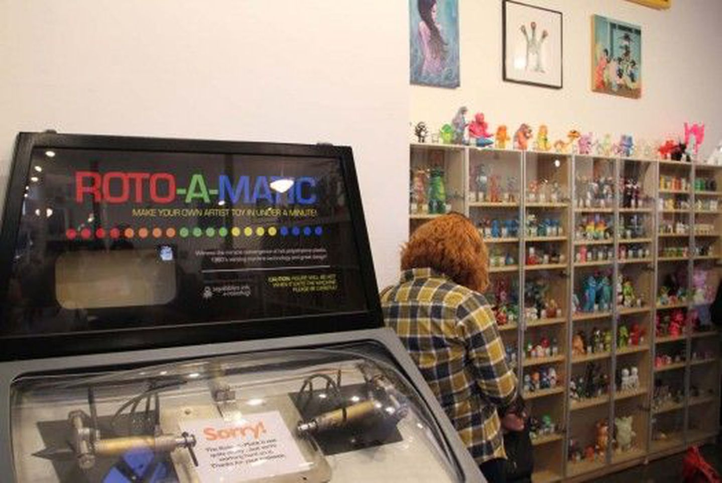 Roto-a-Matic is a collaboration between Chicago-based product development specialists Squibbles Ink and designer toy store Rotofugi. Taking on the vintage Mold-a-Rama machine, the new project aims to redesign the molds that make plastic toys in less than one minute. The original Mold-a-Rama machines work by injecting a molten concoction of polyethylene plastic into a mold, hitting it with a blast of air to make the plastic conform to the shape of the mold and then opening up the mold to drop the figure into a bin where customers can retrieve it. The Roto-a-Matic project is making new molds for the machine, asking the artistic community to contribute designs. The first toy is the Helper Dragon designed by sculptor Tim Biskup. Each figure comes with its own Certificate of Authenticity indicating the name of the figure, name of the artist, date of manufacture and color. The Roto-a-Matic is currently operational and available only in one location in Chicago. Check out the machine in action: This article originally published at PSFK here Read more: http://mashable.com/2012/08/08/diy-toy-vending-machine/